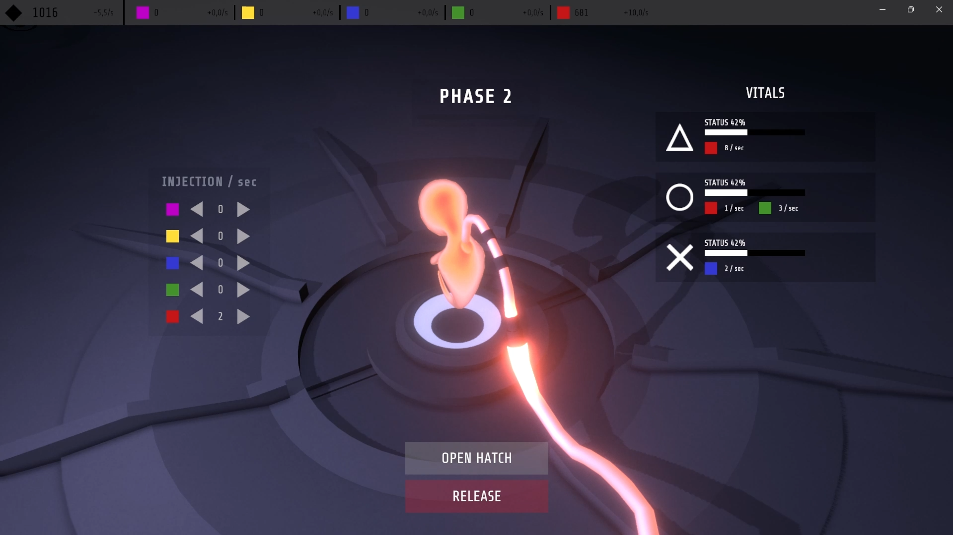 There are three stages available at this point. Every stage changes Vitals. All vitals must be above %75 to progress in a stage and if all vitals drops to zero, Fetus dies.